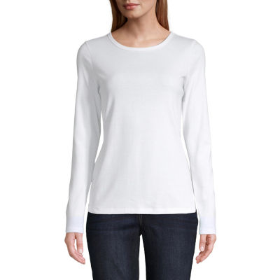 St John S Bay Womens Crew Neck Long Sleeve T Shirt Color White Jcpenney